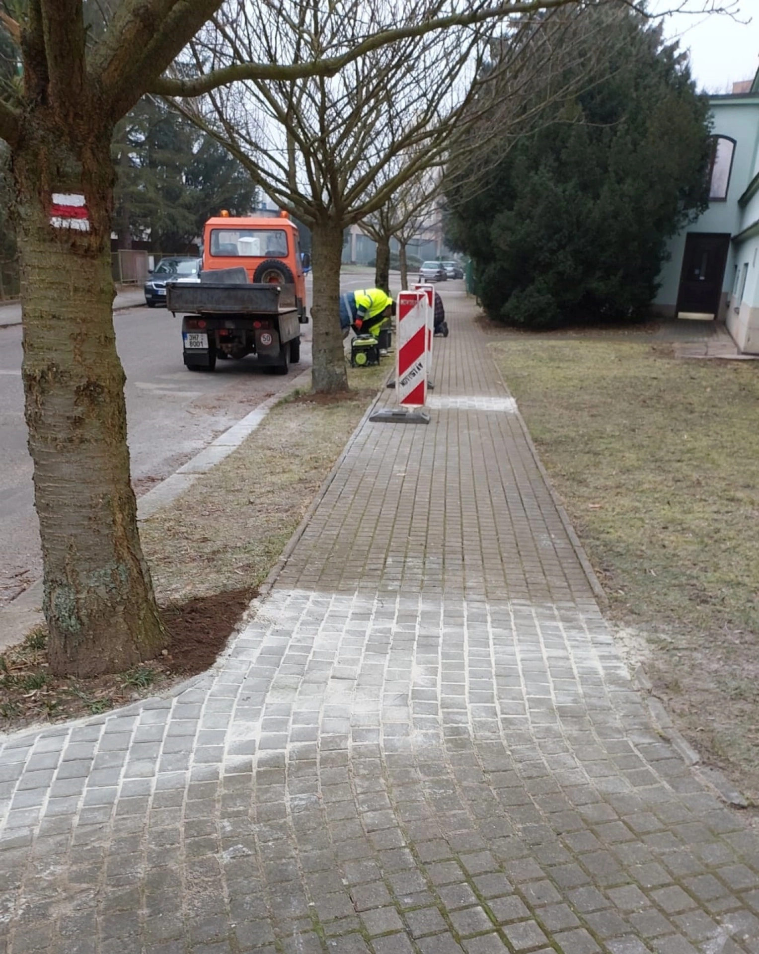 Oprava chodníku u divadla se právě dokončuje
